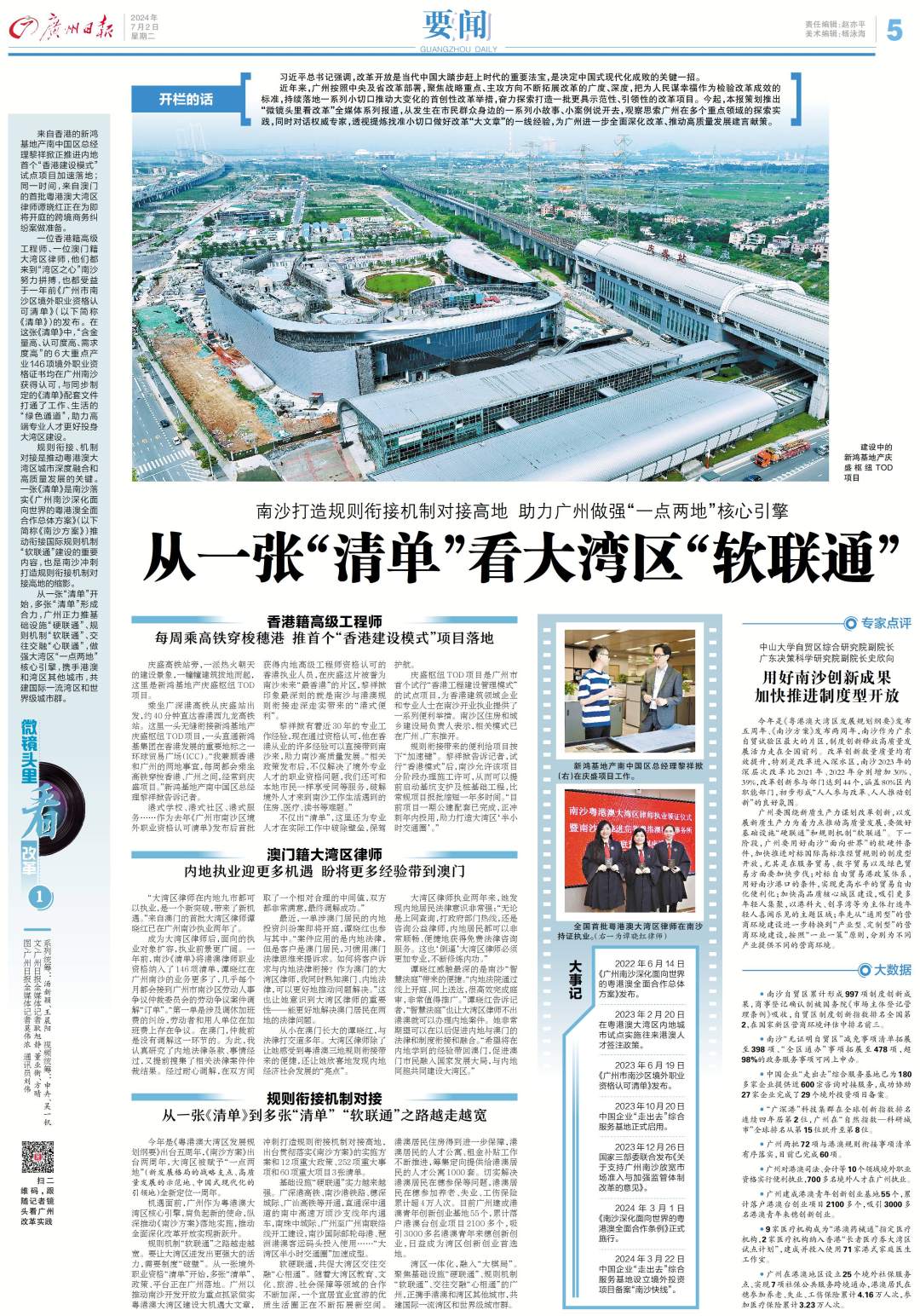庆盛枢纽TOD项目是广州市首个试行“香港工程建设管理模式”的试点项目,为香港建筑领域企业和专业人士在南沙开业执业提供了一系列便利举措。南沙区住房和城乡建设局负责人表示,相关模式已在广州、广东推开。