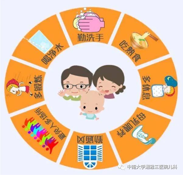 1.家长和小朋友外出回到家,或饭前便后,要养成先洗洗手的好习惯,勤洗手,防止病从口入。在饮食上,不喝生水,不吃生冷或不熟的食物。