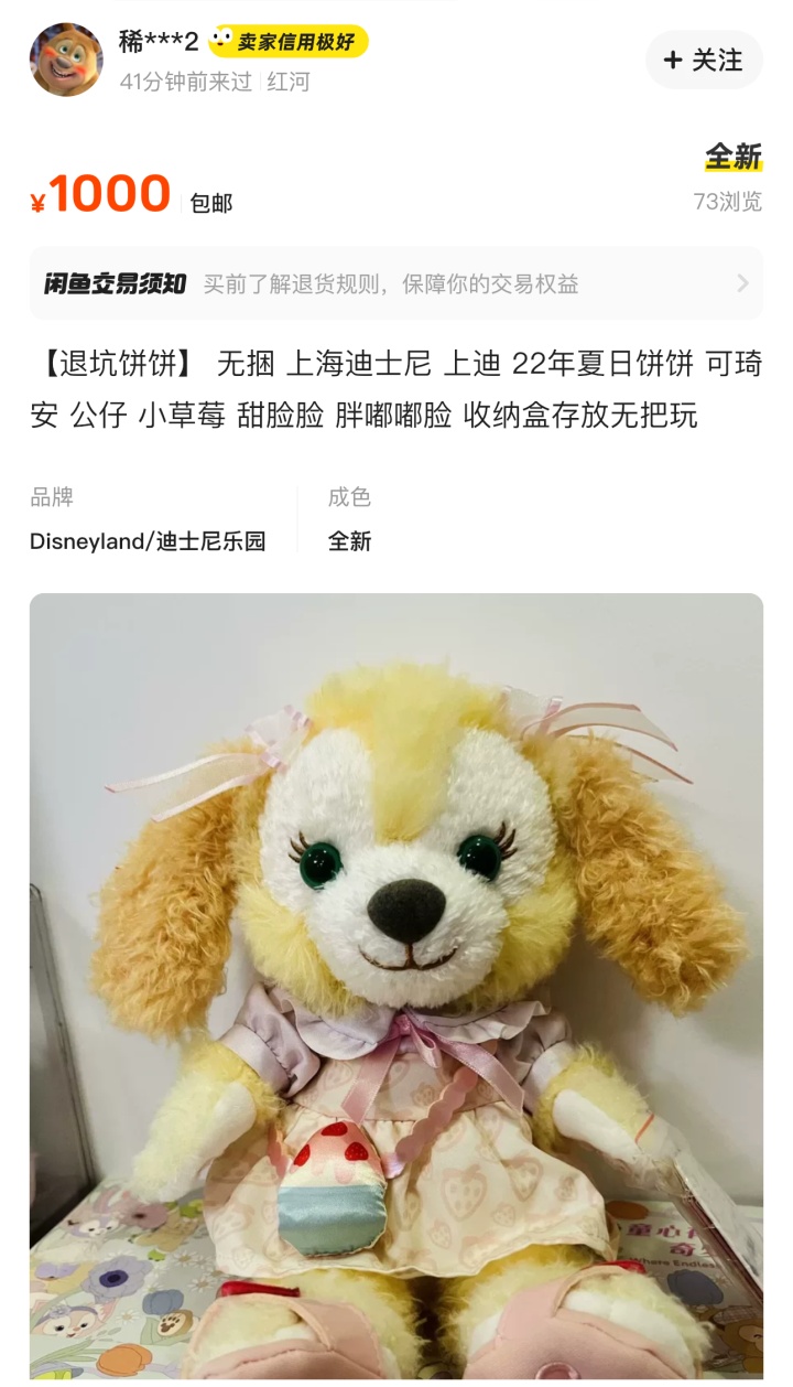 @021视频 在网购平台上查询发现,近一年内发售的迪士尼玩偶和公仔价格也已经有了一定程度的涨幅,如发售价269元的2024限定玩偶,目前售价673元,发售价318元的2023限定玩偶售价999元。