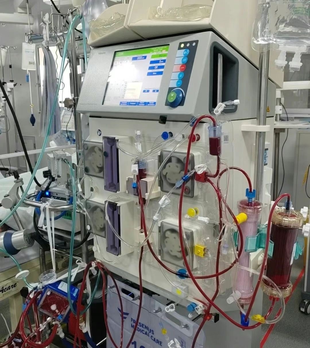 心电监护提示室性心动过速、心室颤动等恶性心律失常,急诊医生立即予气管插管呼吸机辅助通气、药物纠正心律失常、电复律、电除颤等抢救措施,收入ICU进一步治疗后,患者仍反复室速、室颤,血压难以维持,随后出现心率减慢、血压无法检测。于是医生立即给予心肺复苏,众多医务人员接力进行胸外按压以维持叶先生的循环。