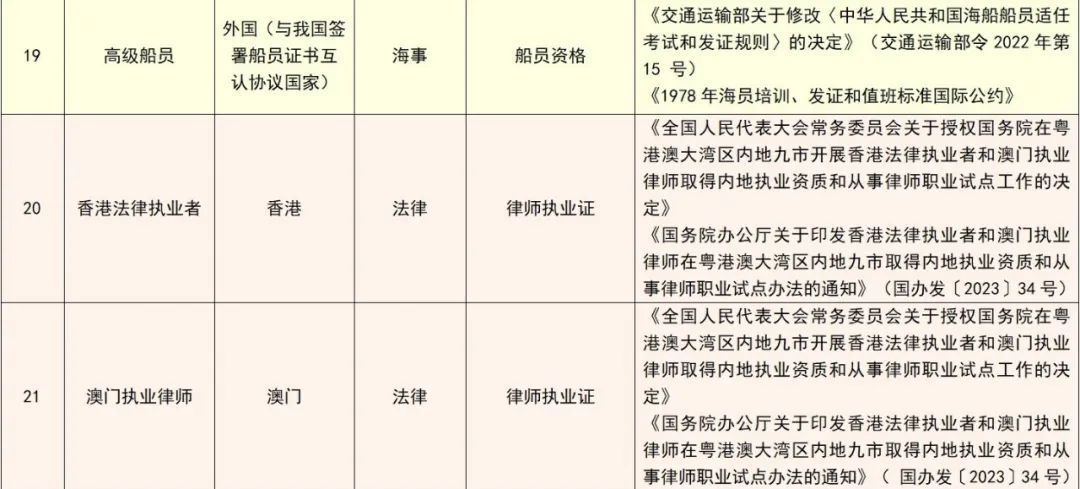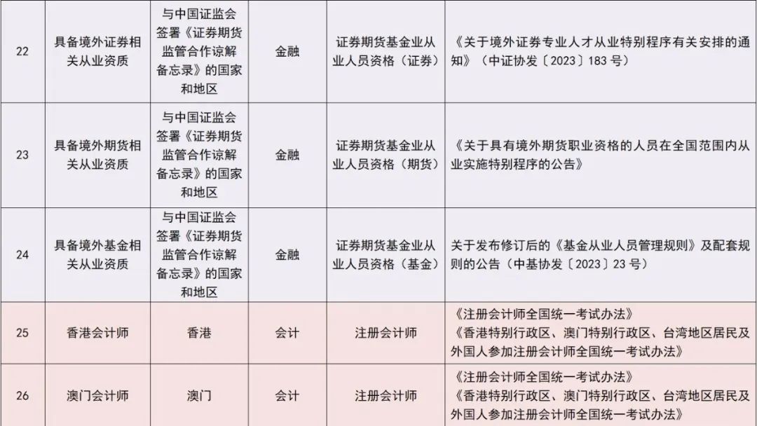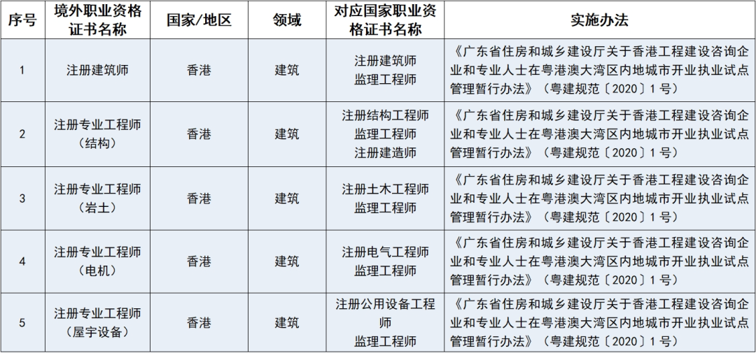 深圳市境外职业资格便利执业认可清单(河套深圳园区专版)
