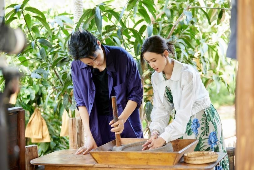 背依高黎贡山山麓,俯瞰怒江河谷,比顿咖啡庄园云遮雾绕,风景旖旎,连片的咖啡树绵延向远方。袁弘、张歆艺在园区内亲身体验了一把古法咖啡的制作工艺,从脱壳焙炒到研磨煮制等步骤中,感受传统咖啡师的独运匠心。此外,两人还通过品尝和鉴别“长毛的咖啡”“下油锅的咖啡”“折耳根咖啡”等多款云南创意咖啡,解锁前所未有的舌尖体验。