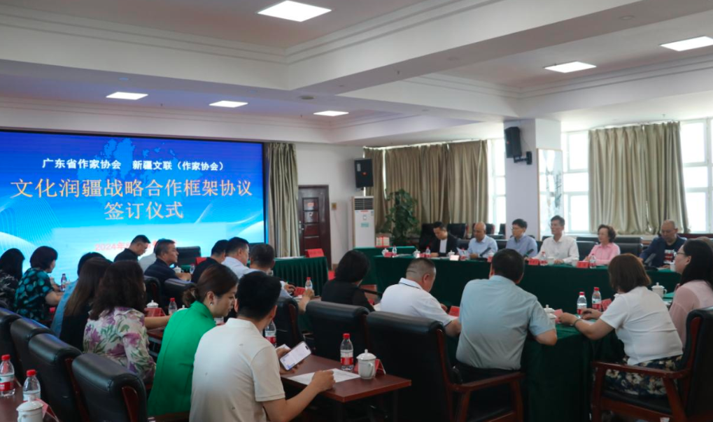 6月24日上午,广东作协、新疆文联(作协)“文化润疆”战略合作框架协议签订仪式暨作家座谈会在乌鲁木齐举行。
