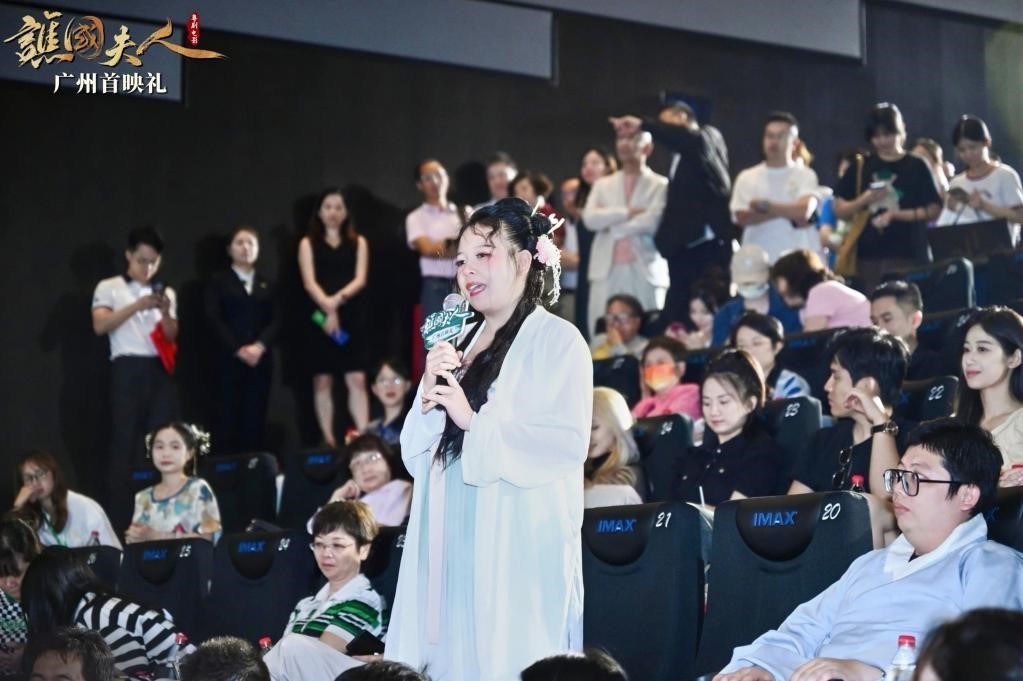 当天,粤剧电影《谯国夫人》首映结束后,全场观众报以经久不息的热烈掌声。广府文化推广大使、粤语读诗达人张弛赞叹《谯国夫人》是一部“粤文化的百科全书”,凭借翻唱粤剧《唐伯虎点秋香之求神》火遍全网的青年歌手蜡青则表示,这部电影让他对岭南瑰宝粤剧又多了一番了解和热爱,“希望能有更多观众通过《谯国夫人》这样的电影佳作爱上粤剧”。