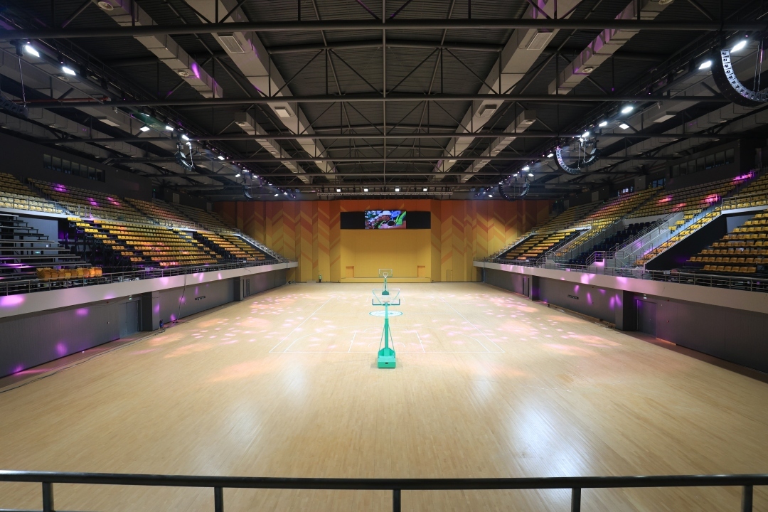 智能化则是体育馆的另一大特点。针对场馆空间大、布局复杂等特点,中建八局的智能化团队告诉记者,他们为场馆量身打造了渲染比赛氛围的舞台灯光系统、场馆扩声系统、场馆LED显示大屏系统等13个智能化特色分项系统工程。多功能体育馆是举行各种体育比赛文艺汇演的重要场所,其音响扩声系统必须满足各种文体赛事多用途功能和比赛实时播报的扩声需要。项目团队为场馆量身打造的体育馆扩声系统,在10个实施方案中,通过层层筛选,最终选用调音台、处理器扩声设备等设备采用国外进口品牌、国内一线品牌相结合的形式实施,以确保语言扩声时的声音清晰度文艺演出时的音质的柔和度、丰满度、平顺度,达到国际竞赛使用标准。