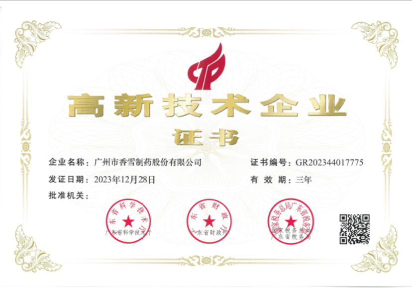 凭借过硬的质量管理和精益求精的匠心精神,香雪制药成功入选2023年广东省首批高新技术企业名单。