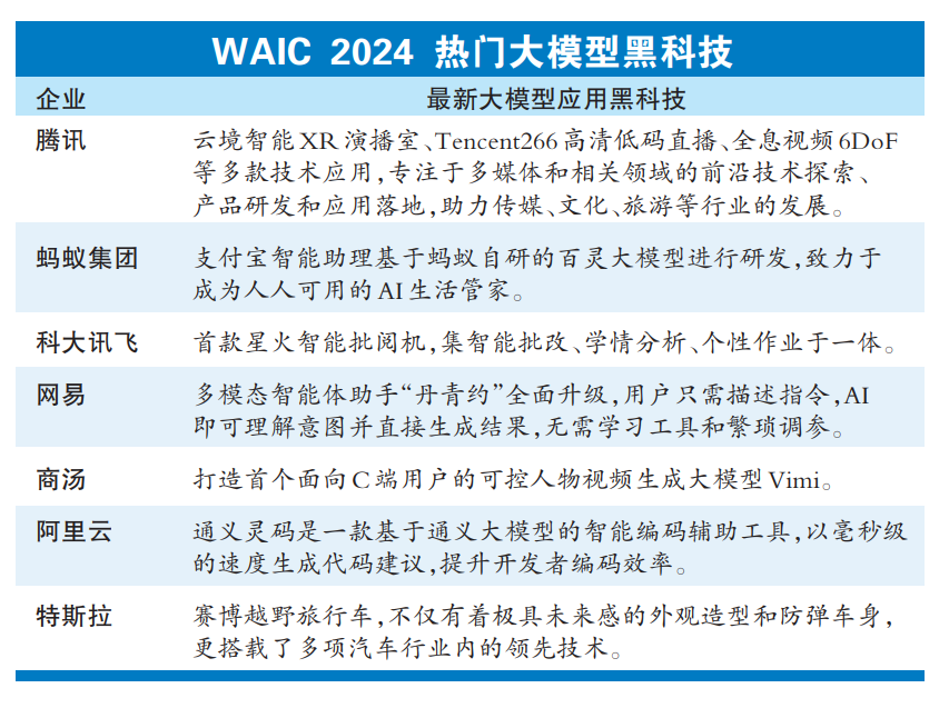 大模型能做什么?假如在去年大模型刚落地时,绝大部分的答案是文本生成、文档处理、信息搜索、AI绘画、写代码等等。经过一年多,行业的高速发展、版本的更新迭代后,在今年的WAIC上,人工智能行业给出了截然不同的答案——全媒体记者巡展时看到,许多大模型产品具象化趋势显现,无论是B端抑或C端,多款大模型应用、AI智能体“遍地开花”。在2024WAIC开幕首日,众多科技企业“大佬”就大模型应用、赋能产业等热门话题论道,大部分行业共识认为,今年国内大模型的各类应用推出将迎来一轮高峰。