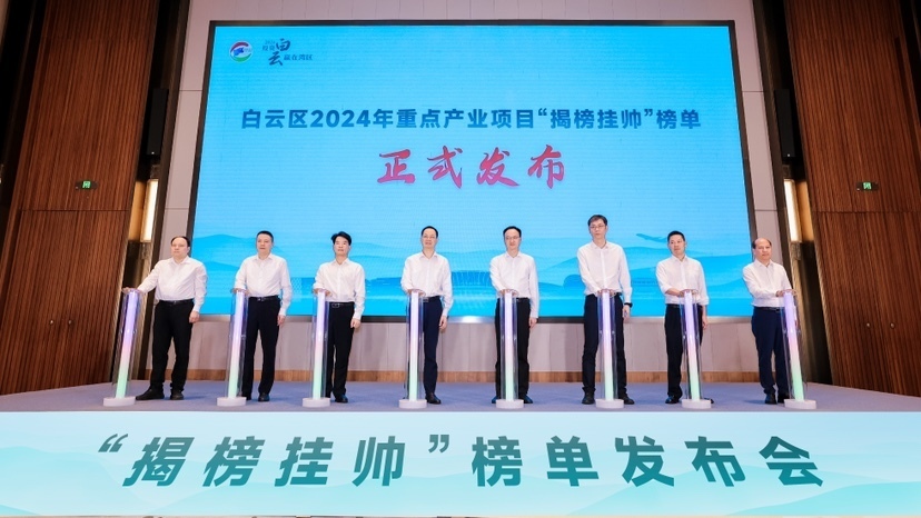 7月5日,广州市白云区人民政府举行白云区2024年重点产业项目“揭榜挂帅”榜单发布仪式,面向国内外500强、“小巨人”、“独角兽”等各行业具有较高影响力的企业及社会人士等招贤揭榜,引进具有核心竞争力的“风口”产业项目落户白云区。榜单共10个项目,涵盖美丽健康、新能源、现代都市农业、智能网联及新能源汽车等重点产业。白云区领导戴建生,白云区各镇街及有关部门负责人出席发布仪式。