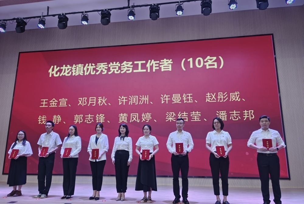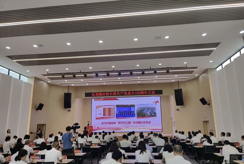 近日,广州市番禺区化龙镇在中航光电华南产业基地召开庆祝中国共产党成立103周年大会,表彰一批优秀共产党员、优秀党务工作者和先进基层党组织。区人大常委会副主任、化龙镇党委书记黄浩霖,化龙镇全体班子成员、在编干部村(社区)党组织书记、机关事业单位、国企及“两新”党组织书记、红色党建联盟成员单位代表等共130多人参加大会。