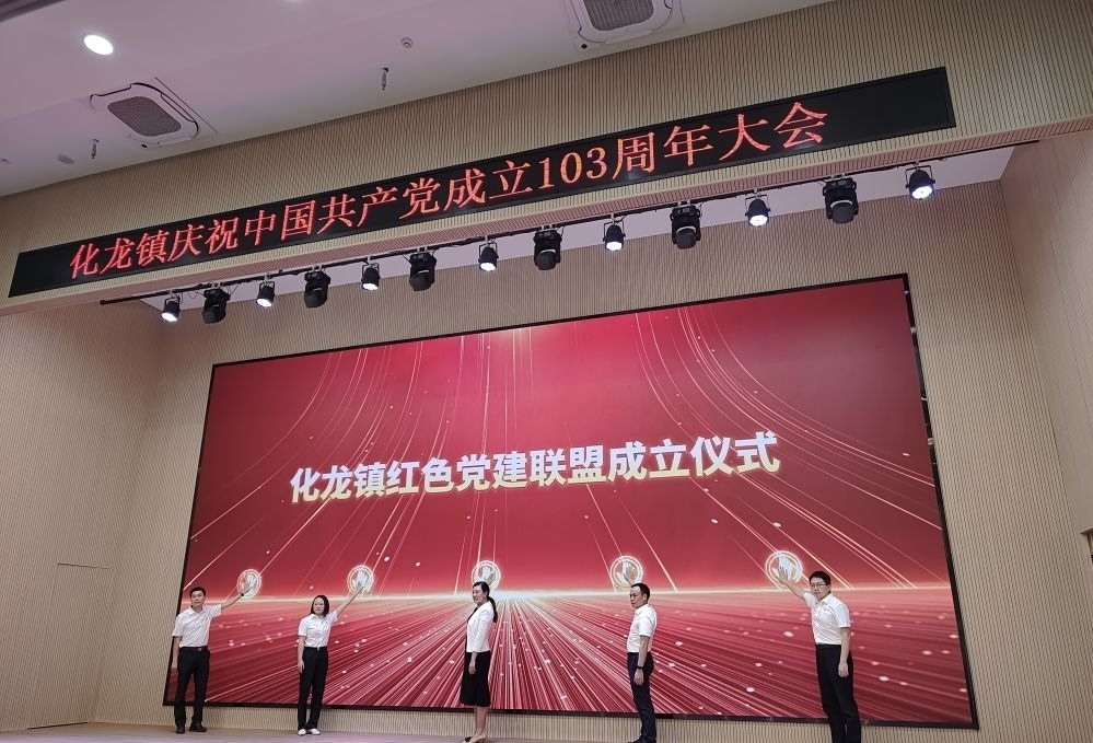活动现场举行了化龙镇红色党建联盟成立和党员首席企业服务官制度启动仪式。化龙镇将组建人才服务、智造产业、农业科技、法治保障和招商引资等5个红色党建联盟,目前全联盟共有30个成员单位,按照“区域统筹、条块结合、联动共建”的原则,整合区域内各类型党组织,构建区域化党建共同体,助推化龙建设、管理和服务,实现党建与高质量发展同频共振、互促共进。