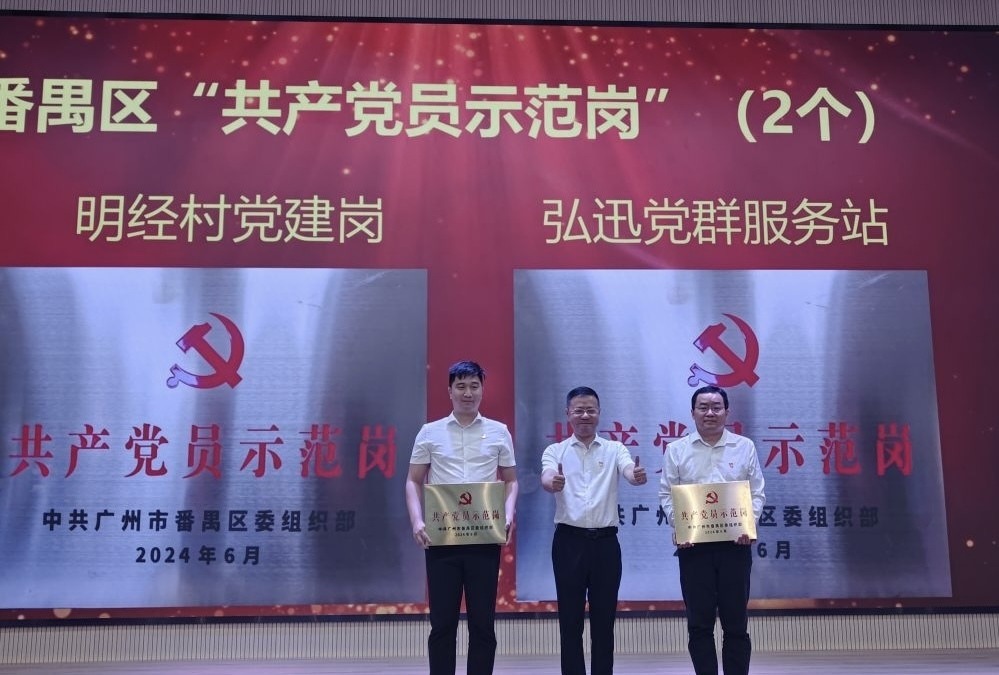大会还对16名优秀共产党员、10名优秀党务工作者以及9个先进基层党组织进行了表彰,并为获评区级“共产党员示范岗”的明经村和弘迅电梯颁发党员示范岗牌匾。