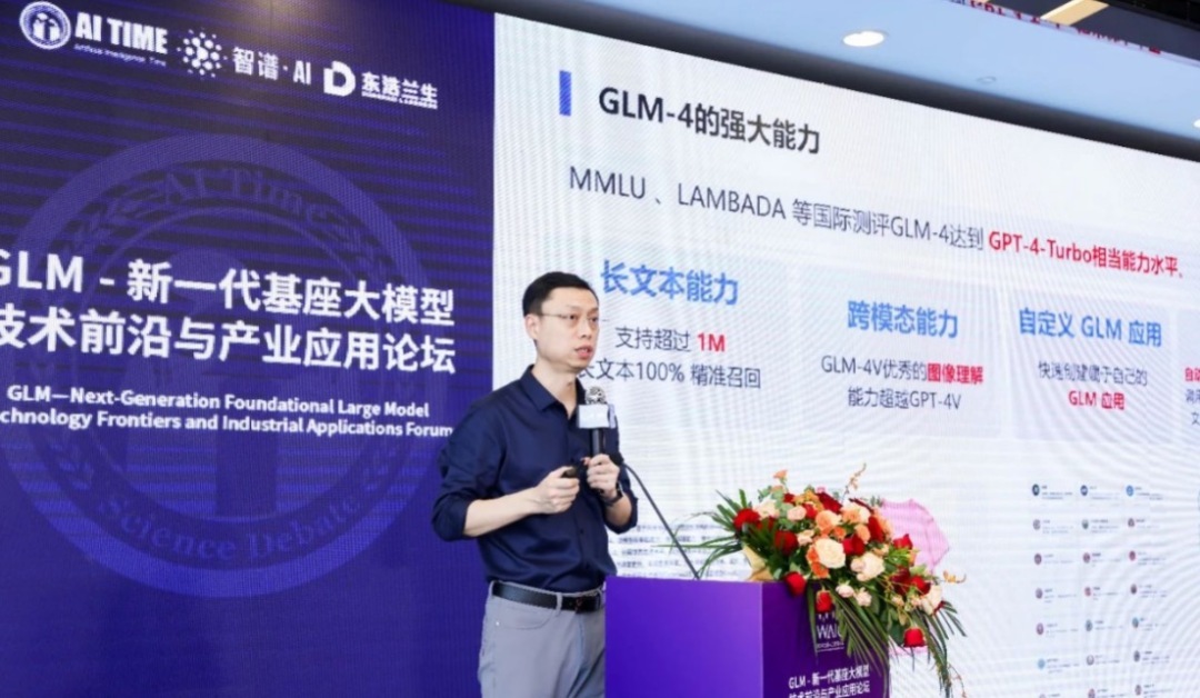 7月5日,在由清华大学计算机系知识工程实验室主办,AI TIME承办,东浩兰生(集团)有限公司和智谱AI协办的GLM-新一代基座大模型技术前沿与产业应用论坛上,嘉宾们聚焦GLM-4大模型,共同分享了GLM-4大模型的最新研究成果和理论突破,探索GLM-4的技术前沿、产业生态和落地应用。