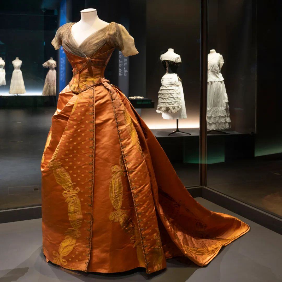本次展览以十八世纪华丽绝美的宫廷礼服作为开场,展示法国王室成员和贵族如何利用礼服在宫廷内外展现其身份和地位。展品中的亮点包括享有“高级订制之父”美誉的查尔斯·弗雷德里克·沃斯(1825-1895年)设计的一件令人惊艳的裙装。