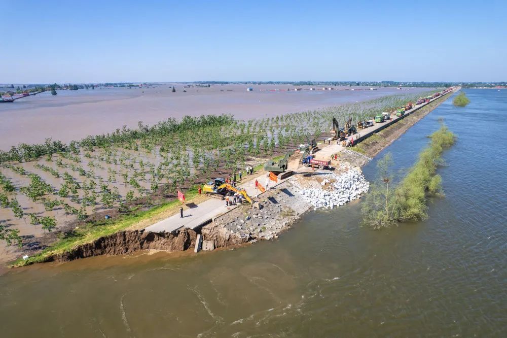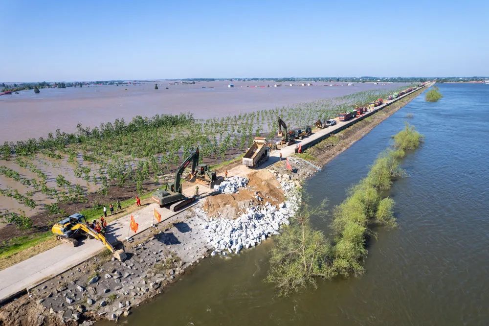 7月5日,湖南省岳阳市华容县团洲垸洞庭湖一线堤防发生决口险情后,当地党委政府和有关部门迅速行动,全力转移垸区群众。来自各地的抢险救援力量迅速汇集,消防、武警和民兵等组成的抢险队伍正在紧张地封堵决口,加固间堤,运送抢险物资,确保人民群众生命财产安全。