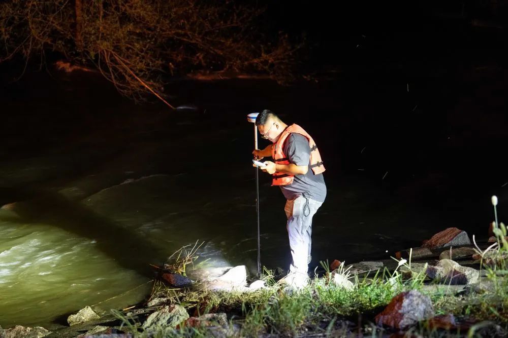 7月6日凌晨,抢险人员在湖南省岳阳市华容县团洲垸监测水位。
