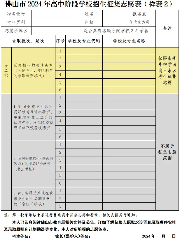 注:提前批和市季华中学体艺特长生不属于本次征集志愿范围。第一批和第二批中不涉及市高级中学或市季华中学的志愿修改(含增加、删除、调整顺序),不属于本次征集志愿范围。