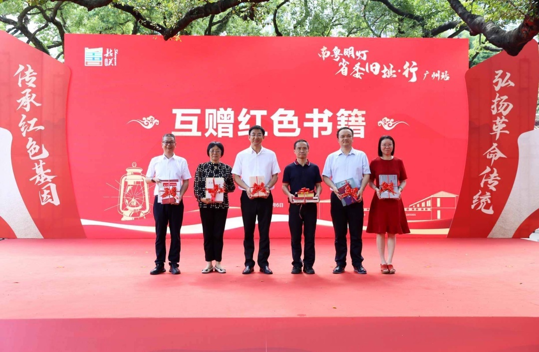 活动现场,毛泽东同志主办农民运动讲习所旧址纪念馆、中共三大会址纪念馆、广东革命历史博物馆、辛亥革命纪念馆(黄埔军校旧址纪念馆)、广州博物馆、韶关市博物馆等纪念馆、博物馆互赠红色书籍,交流革命历史研究成果,共同传承红色基因。