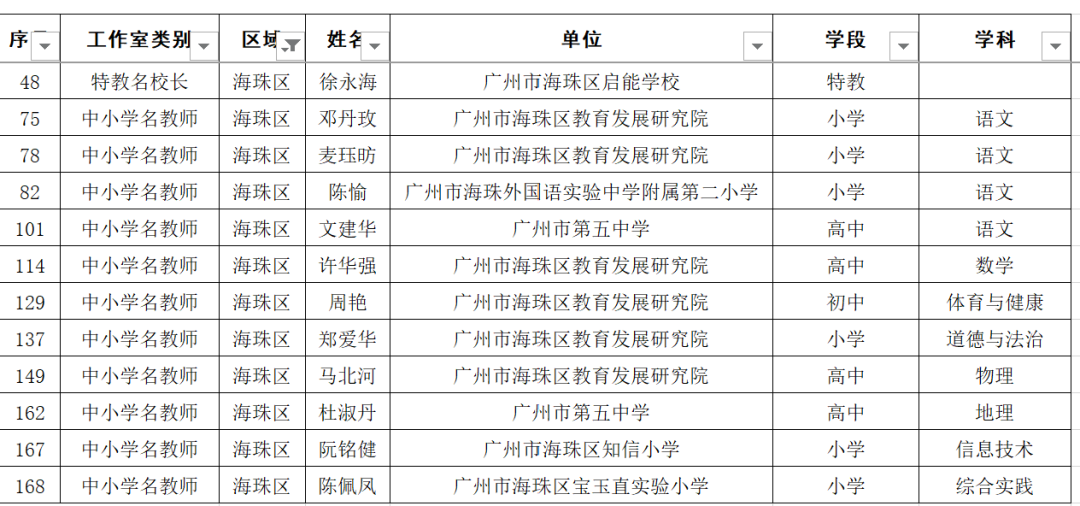 海珠区有12人入选: