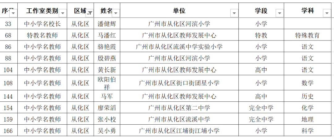 从化区有10人入选: