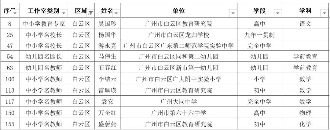 白云区有10人入选: