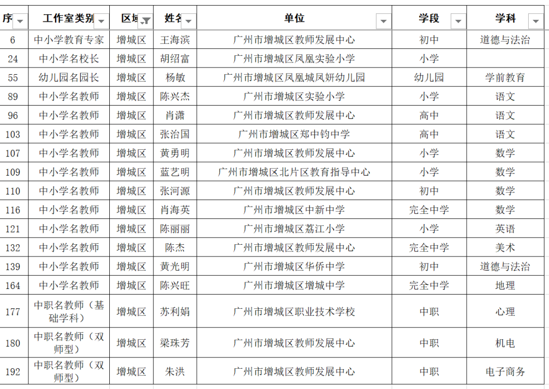 增城区有17人入选: