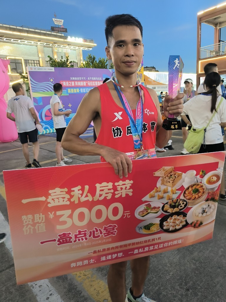 记者注意到,在这场滨江落日跑中,冠亚季军的奖品很有特色,其中冠军是点心宴,亚军是小青龙、濑尿虾,季军是海鲈鱼。所有参赛者均可获得红烧乳鸽一只。可以说,中华美食名镇容桂是跑友们的美味加油站!