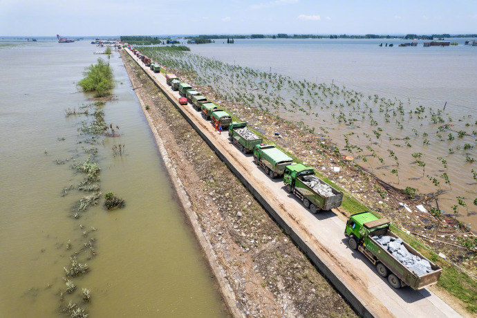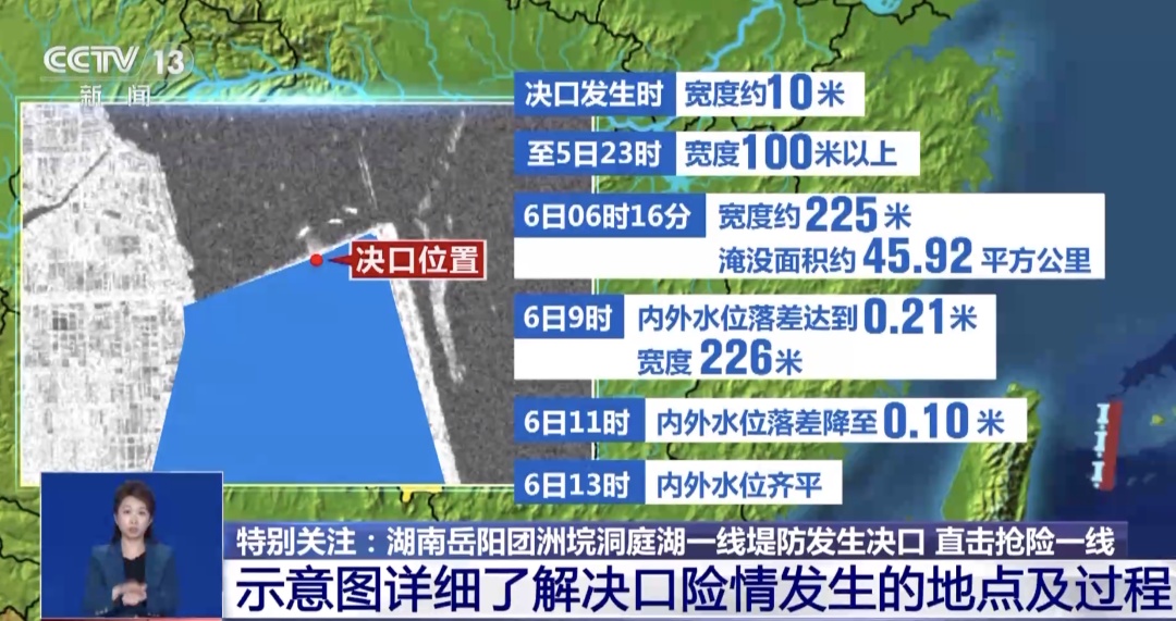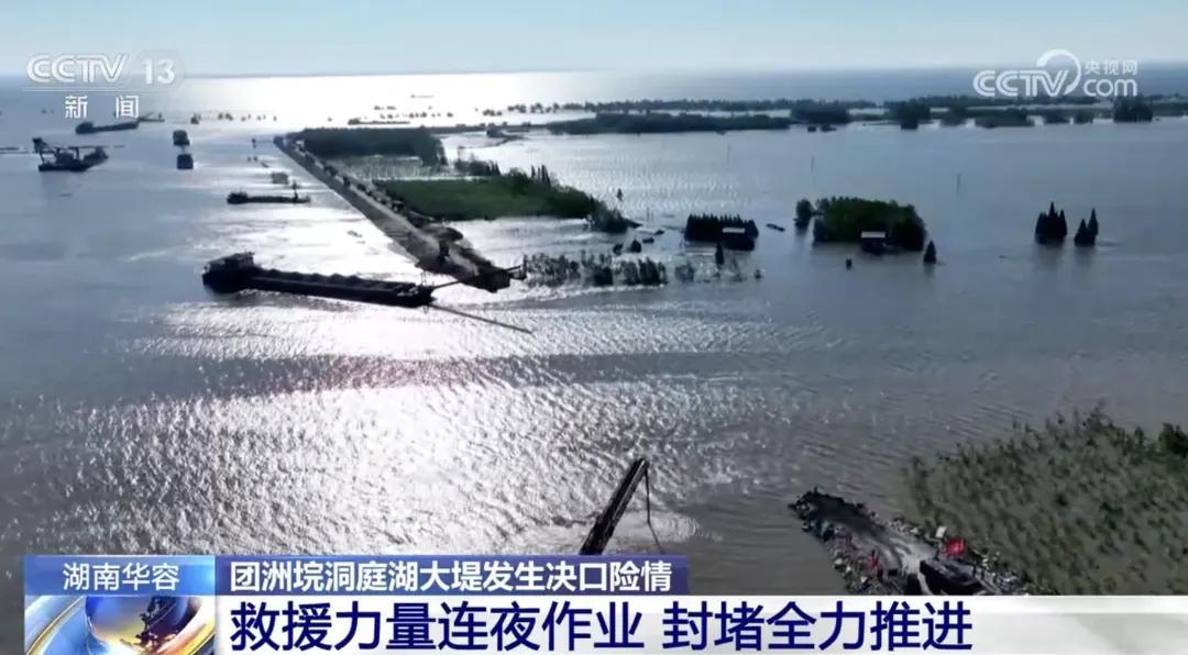 7月5日16时许,湖南省华容县团洲垸洞庭湖一线堤防发生管涌险情。5日17时48分,紧急封堵失败后堤坝决堤。在经过一天一夜的抢险之后,溃口处内外水位落差逐步缩小,6日17时许,现场全面开展封堵作业。截至7日14时,双向封堵已经超过80米,达到84米,预计在7月9日12时前完成封堵。