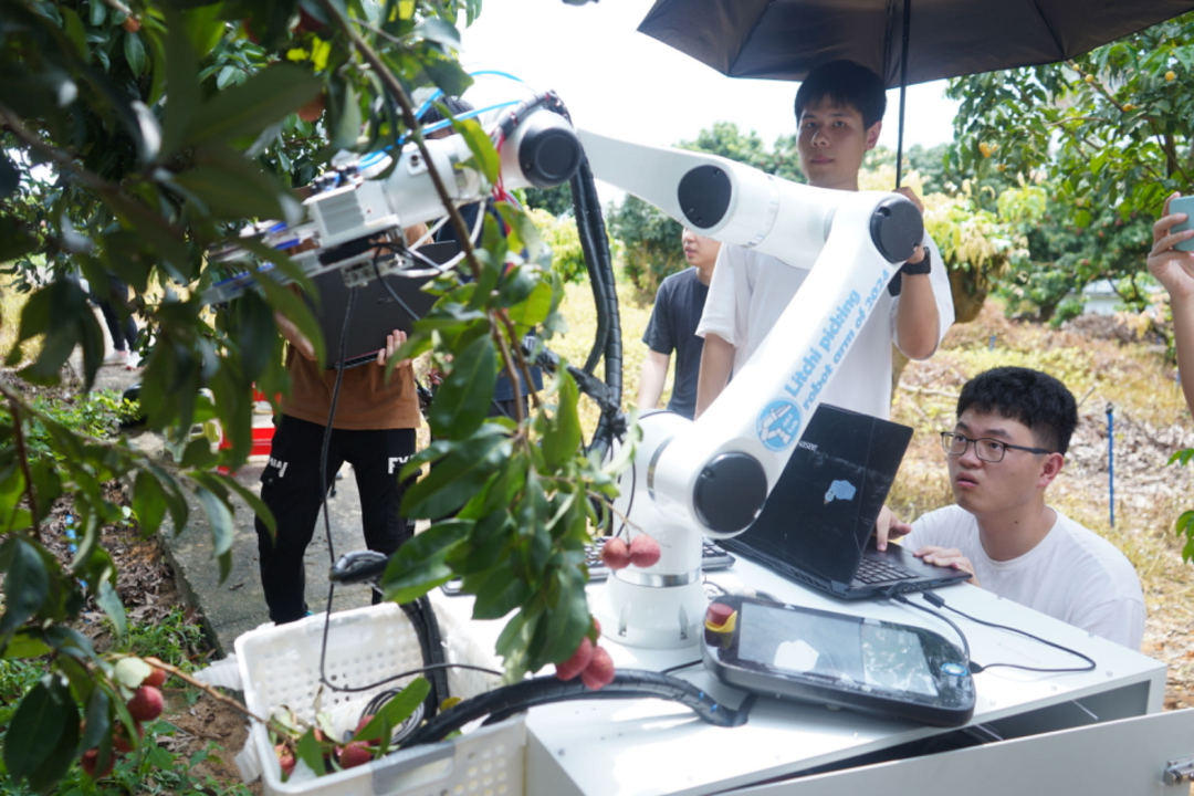 7月,大多数荔枝都已成熟上市销售,但在从化区农业技术推广中心小坑试验示范基地,晚熟品种荔枝“迟美人”还在枝头,并未完全成熟。基地里,低空无人机监控着这里每株荔枝树的果实成熟度,实时把信息传递给采摘机器人、运果无人车,无人智慧果园正初见雏形……
