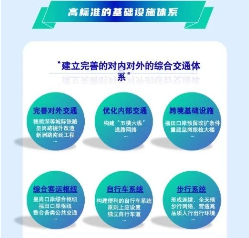 跨境基础设施方面,规划保留现状福田口岸,并预留改扩建条件;原址重建皇岗旅检口岸大楼,建成新皇岗口岸联检楼;改造完善福田保税区一号通道及相关查验设施,预留福田保税区二号通道及相关设施;FT04-10 单元内,结合合作区功能布局与开发建设时序,预留与香港园区的跨境通道。河套深圳园区有2处综合客运枢纽,分别为皇岗口岸综合枢纽、福田口岸枢纽;综合客运枢纽应与口岸设施直接连通,并整合轨道、公交、出租车等各类公共交通,创造便利的接驳条件和换乘环境。