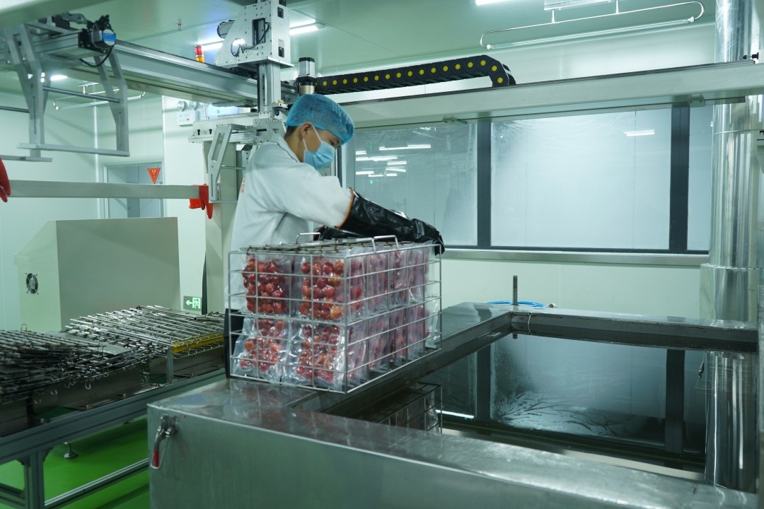 荔枝冻眠锁鲜技术是全链条系统工程,是公司联合多个省级科研单位,在荔枝产业二十多年来深厚的产业基础及技术积淀的结晶。经过二十多年的荔枝保鲜技术研发和生产应用过程中不断攻关,荔枝冻眠锁鲜技术完成了从实验→小试→中试→生产,2023年7月完成国内首条超低温浸渍冷冻锁鲜设备的安装,正式投入生产。