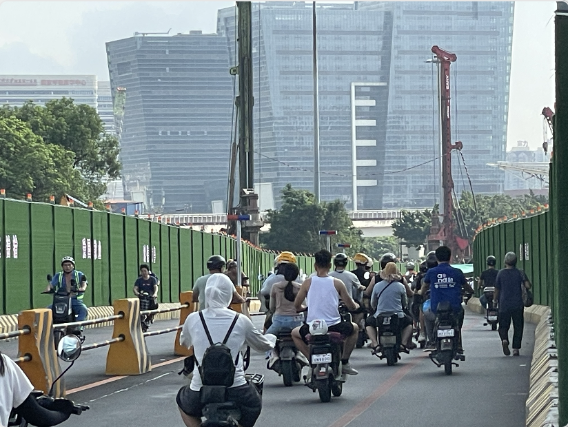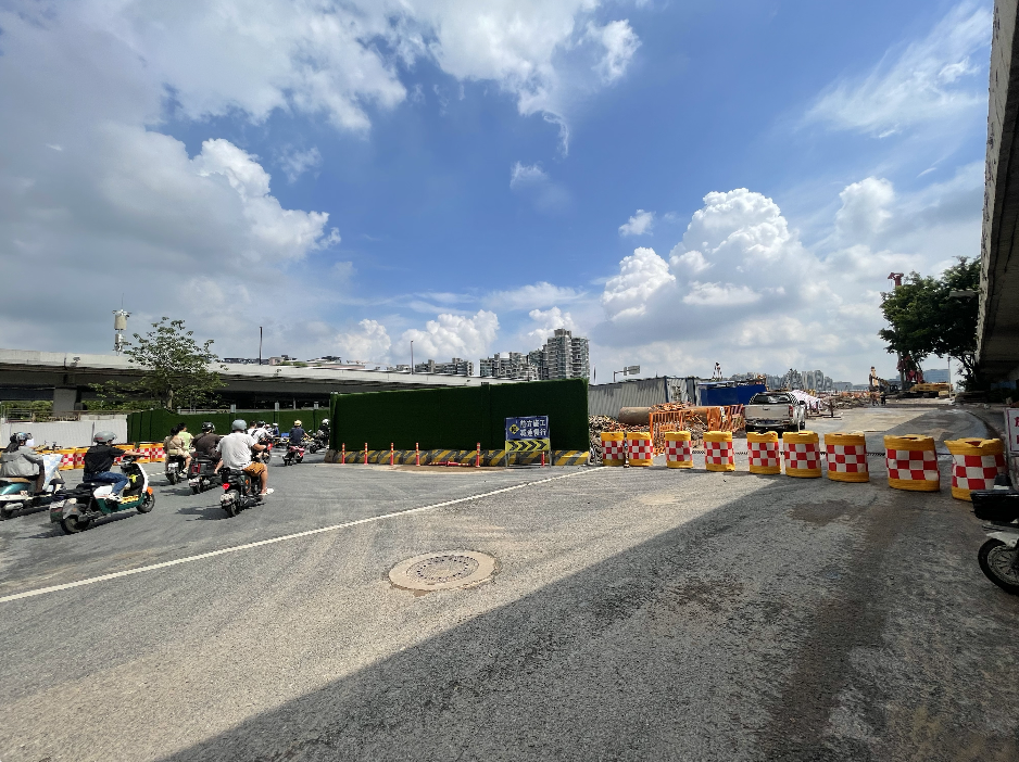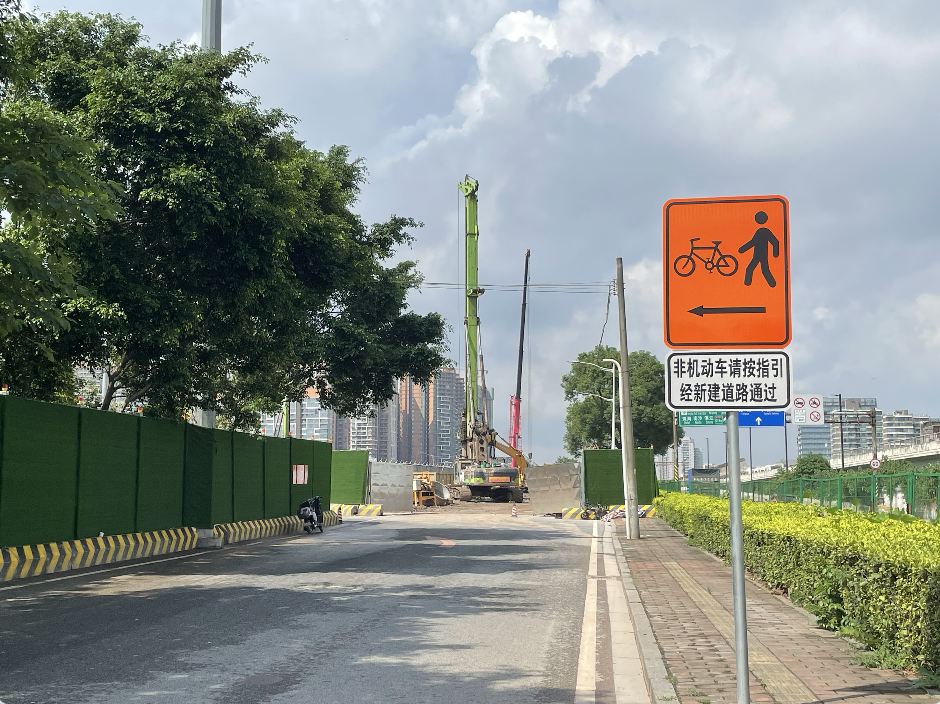 除了珠江大桥西桥有调整外,在珠江大桥东桥处,由于受围蔽施工影响,目前非机动车辆过江需要通过新建钢便桥进入到珠江大桥东桥最内侧车道通行,经过施工区域后再重新回到原非机动车道。