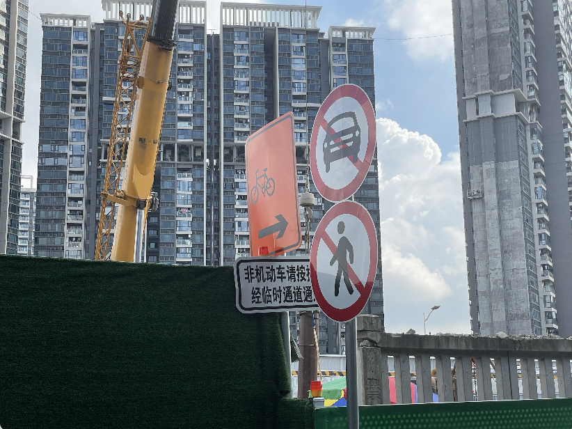 此外,上桥和下桥处都设置了醒目的告示,提醒非机动车辆按照指引经新建道路通过,现场有交通协管员进行交通指引和疏导。