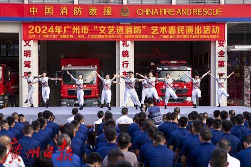 近日,“赋美广州·唱响羊城”——2024年广州市“文艺进消防”艺术惠民演出在广州市海珠区消防救援大队举行。本场演出由广州歌舞剧院、广州市杂技艺术剧院、广东音乐曲艺团联合演出。辖区内消防指战员代表共聚一堂,共享艺术魅力。