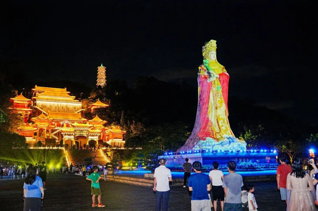 华丽的灯光赋予妈祖像全新生命,为游客们讲述千百年的美丽传说。
