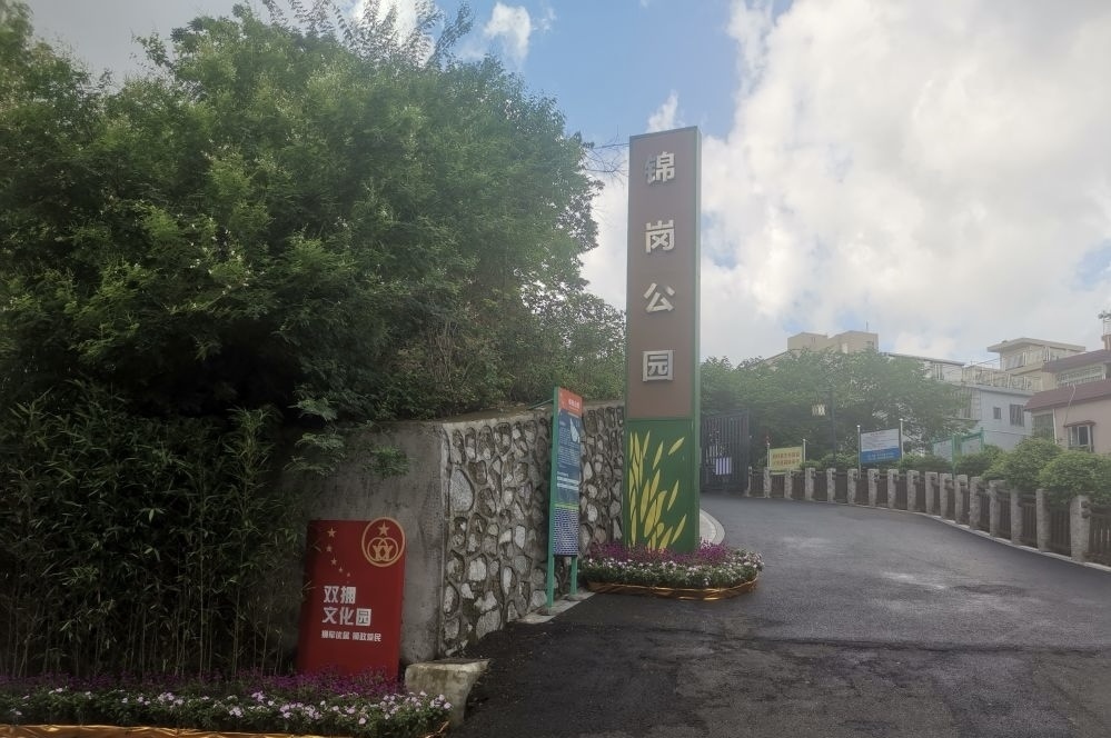 记者看到,锦岗公园常年绿树成荫,层林叠翠,花丛掩映,树木参天;沿山步道宽敞洁净,曲折蜿蜒,空气清新,景色宜人。沿途有长椅石凳供市民休息,山顶有休闲观景台供市民欣赏周围的景色,是市民休闲、娱乐、健身的好去处。