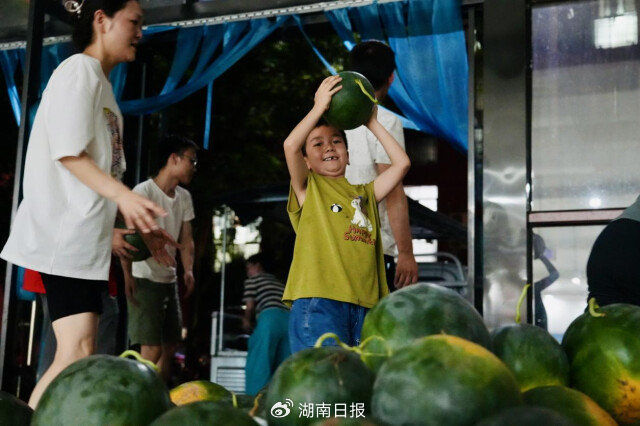 7月6日深夜,华容县职业中专安置点附近的群众集资向受灾群众送来1300公斤西瓜