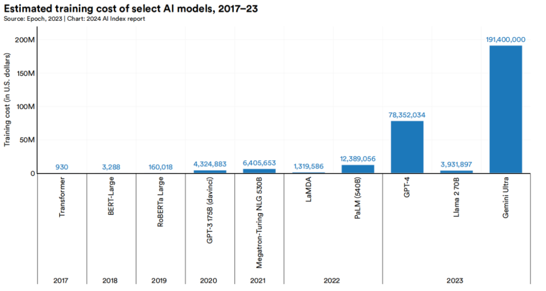 部分AI模型训练估计费用。资料来源:Stanford University HAI