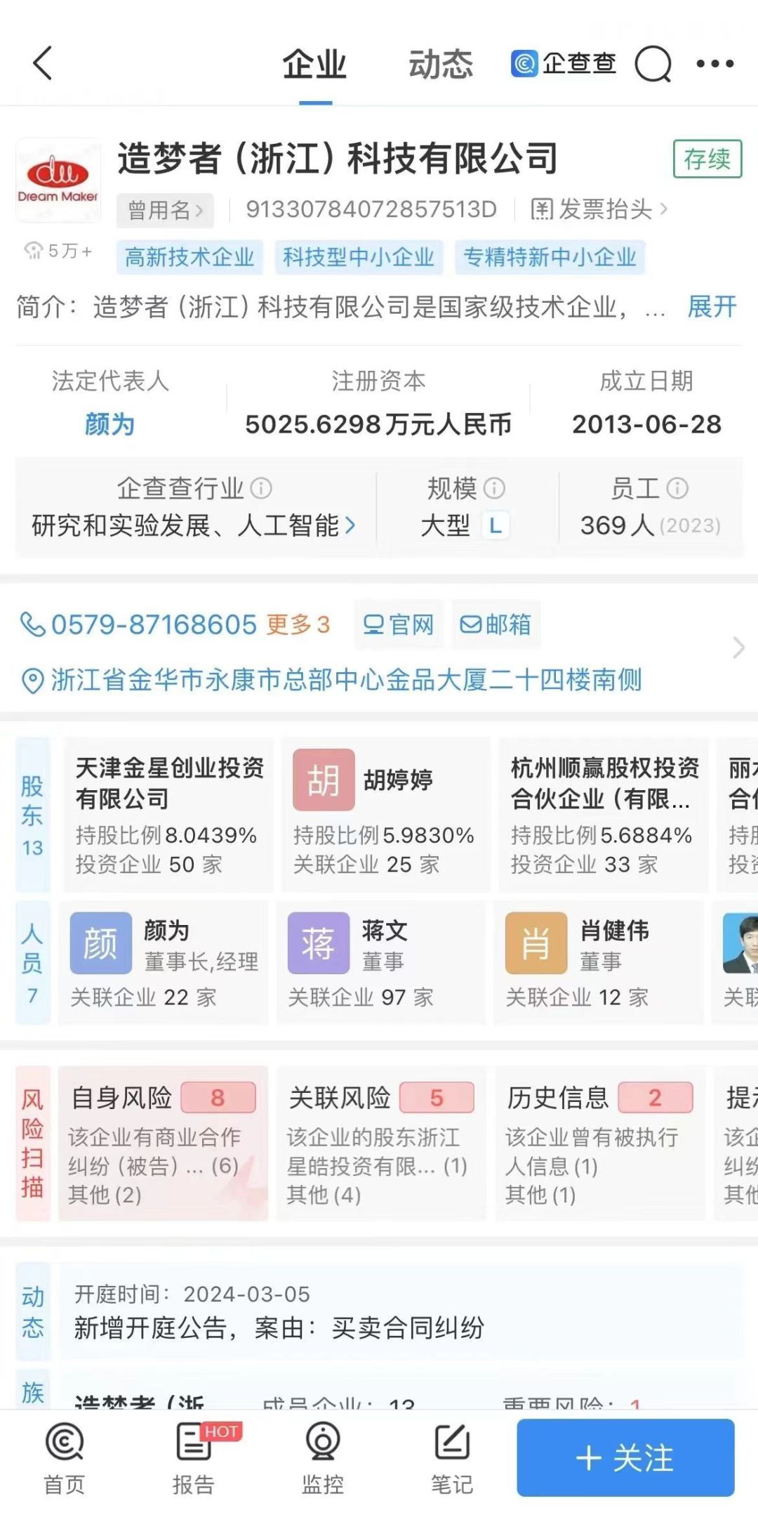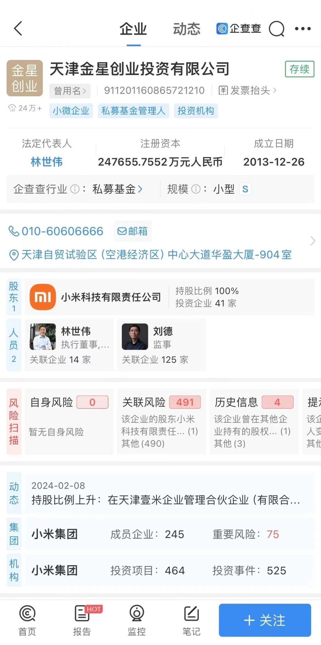 此外,格力电器还在备注中称,“小米科技有限责任公司”100%控股的“天津金星创业投资有限公司”持有“造梦者(浙江)科技有限公司”8.0439%的股权。