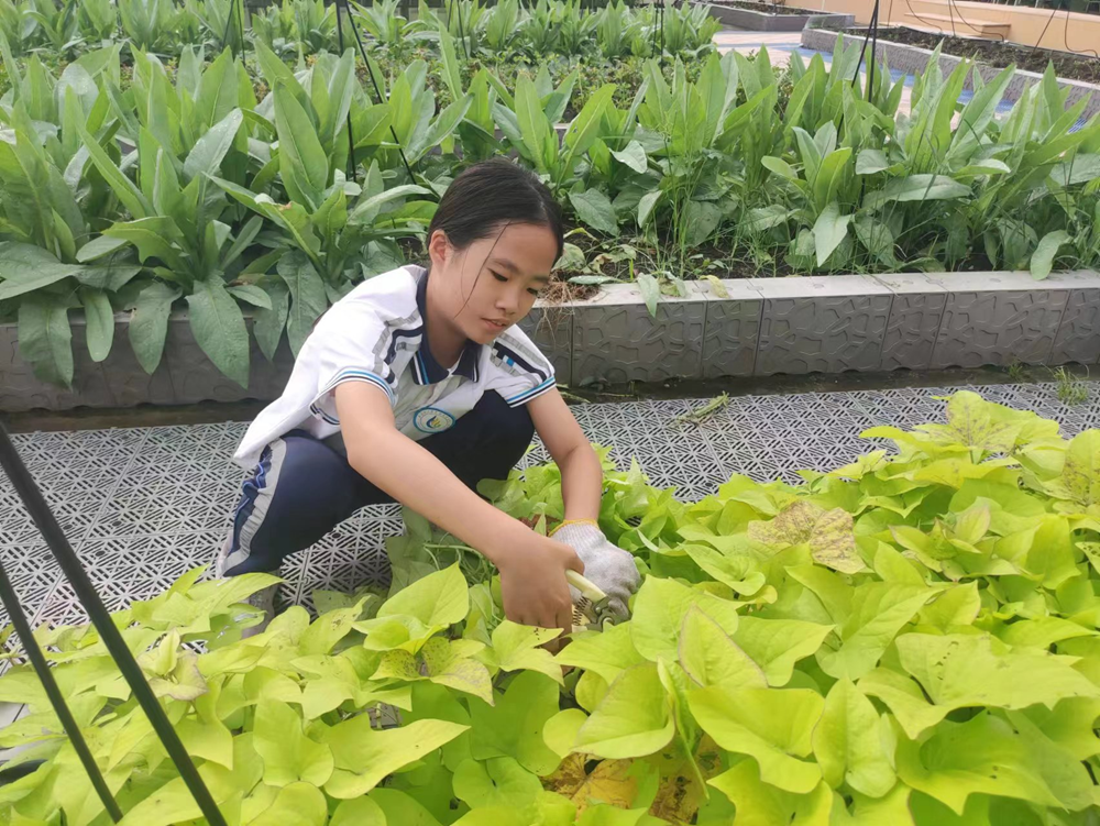 横沥实验学校的太空农场占地面积约2960平方米,农场里应用最新的农业科学技术,集创意美观、品种多样、智慧科技等特征于一体,将科普、观赏、休闲、劳动、经济有机结合,为学生提供服务性劳动、生产劳动及创造性劳动的新概念校园智慧农场。