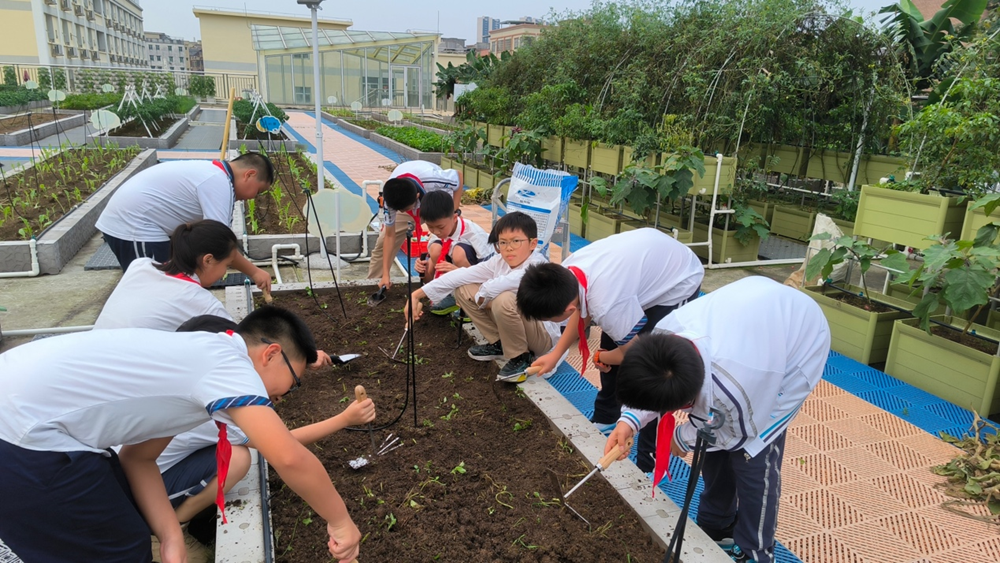 今年4月,横沥实验学校报名参与绿美广东·植手前行活动并成功入围。在收到中山庆琏金属制品有限公司提供的种植工具后,袁老师组织同学们进行种植活动。虽然学校里平日也开展种植课程,但孩子们很少切身体验整个种植过程。绿美广东种植活动,让很多孩子了解到种植的细节与不易。