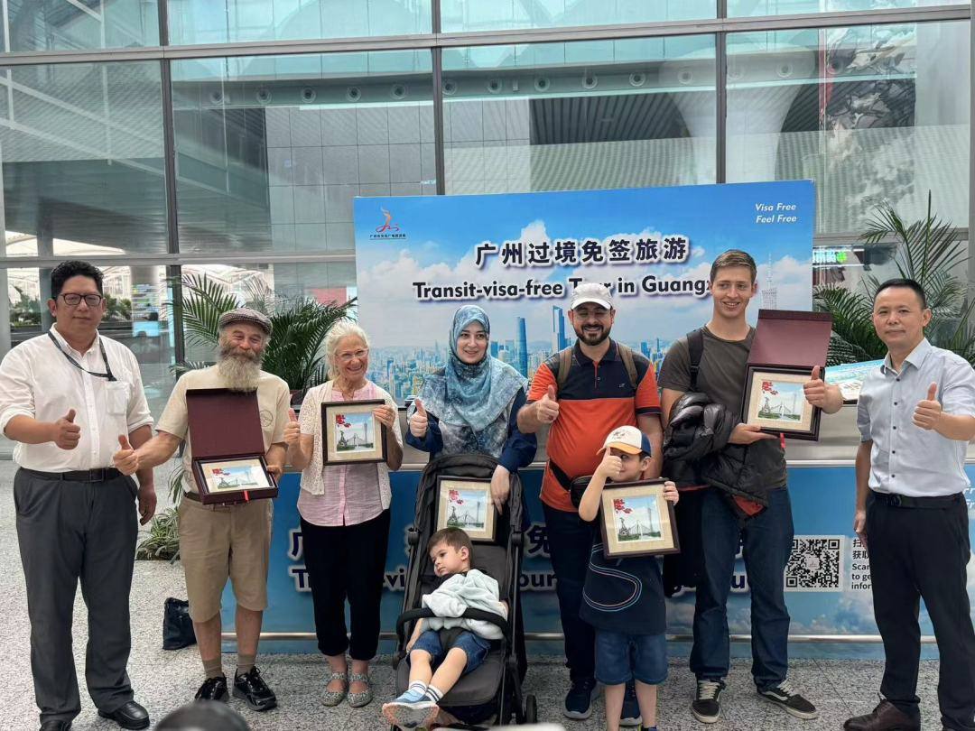 “Welcom to GuangZhou!”7月11日早上,十多名国际中转游客从澳大利亚悉尼飞抵广州,成为今年通过144小时过境免签政策入境、并参加广州免费一日游的首团旅客。