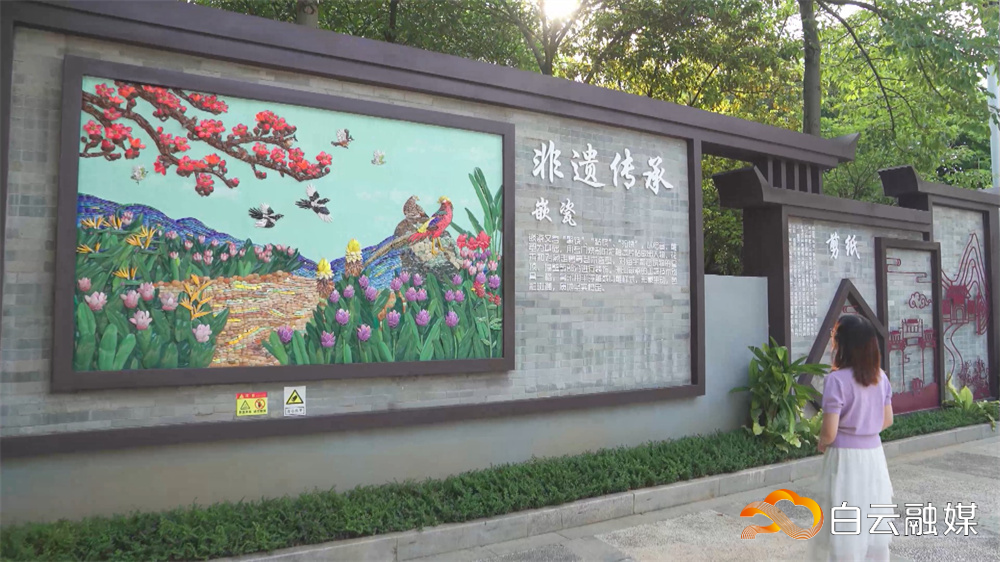 其中,嵌瓷特色作品《花城印象》,是特邀广州市汉民族传统文化交流协会副会长、广州美术学院外聘教师陈旭南创作的,该作品以花城为背景,描绘了姜目观赏花卉竞相开放的盛景。