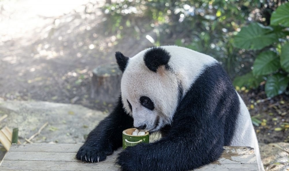 大熊猫“萌萌”坐月子吃“猪脚姜”
