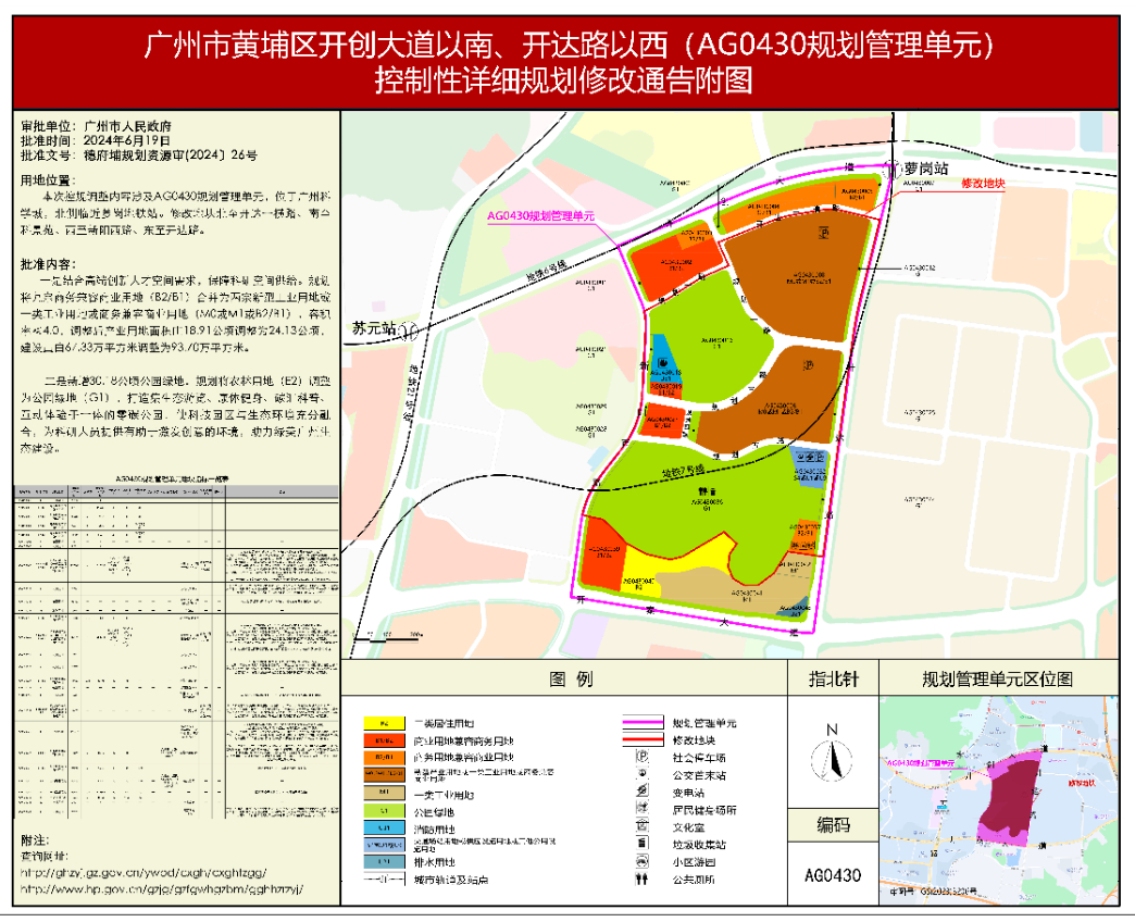 近日,由黄埔区规划和自然资源局组织编制的《广州市黄埔区开创大道以南、开达路以西(AG0430规划管理单元)控制性详细规划修改》已通过规委会审议并获黄埔区政府批准。