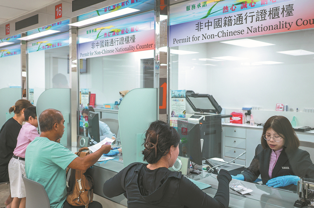 Hong Kong permanent residents who are not Chinese apply for five-year permits to go to the mainland for short-term purposes such as business, tourism and exchanges at a service center in Hong Kong on Wednesday.ANDY CHONG/CHINA DAILY