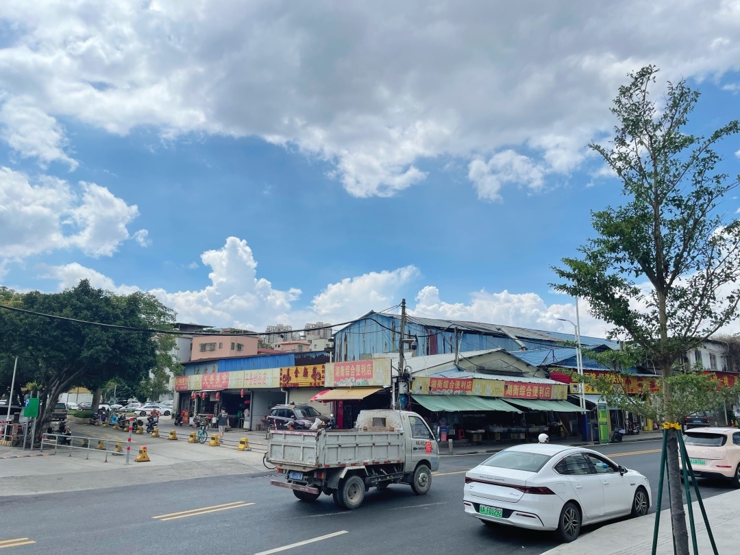 随后,工作组一行来到了南海区桂城街道的季华路(金铂中心)路段。在这里,石肯村的大片铁皮屋突兀地矗立在道路旁,与周围现代化的金铂中心形成了鲜明对比。同时,季华路北侧部分商铺形态较差,部分铁皮屋如同一块块伤疤,烙印在繁华的城市景观之上。