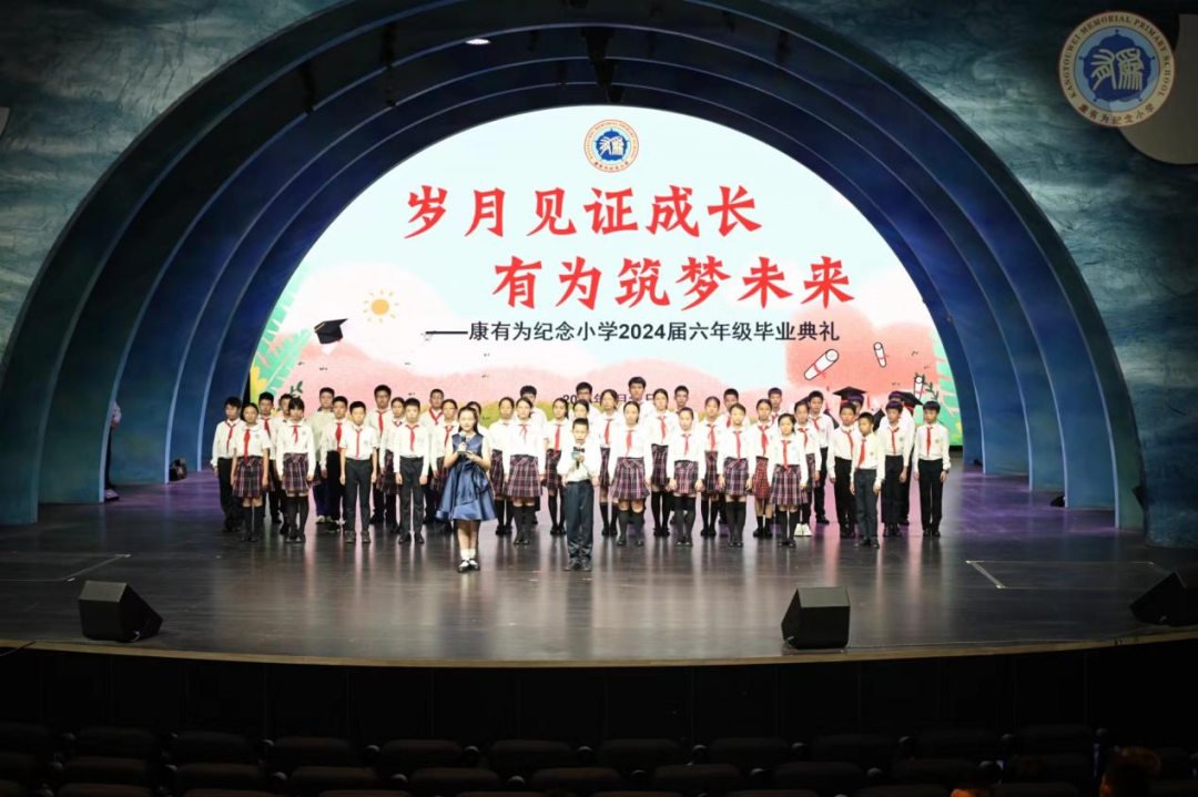 此次毕业典礼在康有为纪念小学六3班同学的合唱中拉开序幕。
