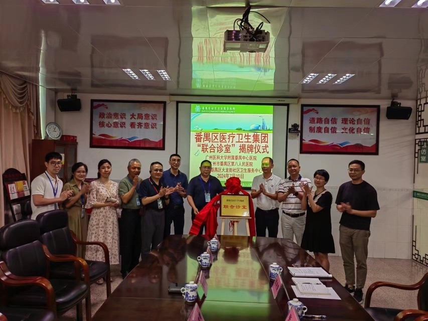 7月9日、10日,广州市番禺区第八人民医院联合石碁镇社区卫生服务中心、大龙街社区卫生服务中心分别举行“番禺区医疗卫生集团——联合诊室”揭牌活动。