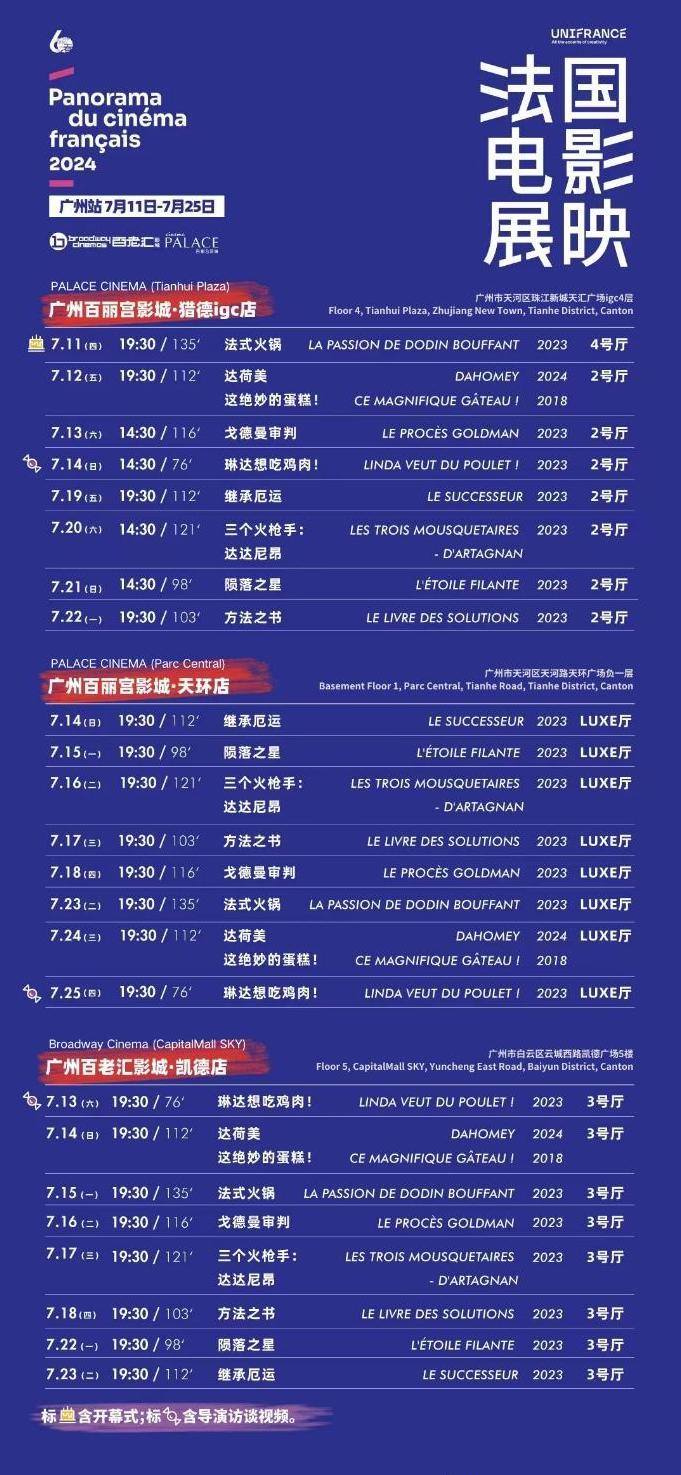 记者从活动上获悉,今年法国电影展映(广州站)将为华南地区观众奉上《法式火锅》《戈德曼审判》《方法之书》《达荷美》《琳达想吃鸡肉!》《陨落之星》《继承厄运》《三个火枪手:达达尼昂》《这绝妙的蛋糕!》等类型、题材、风格各异的影片。