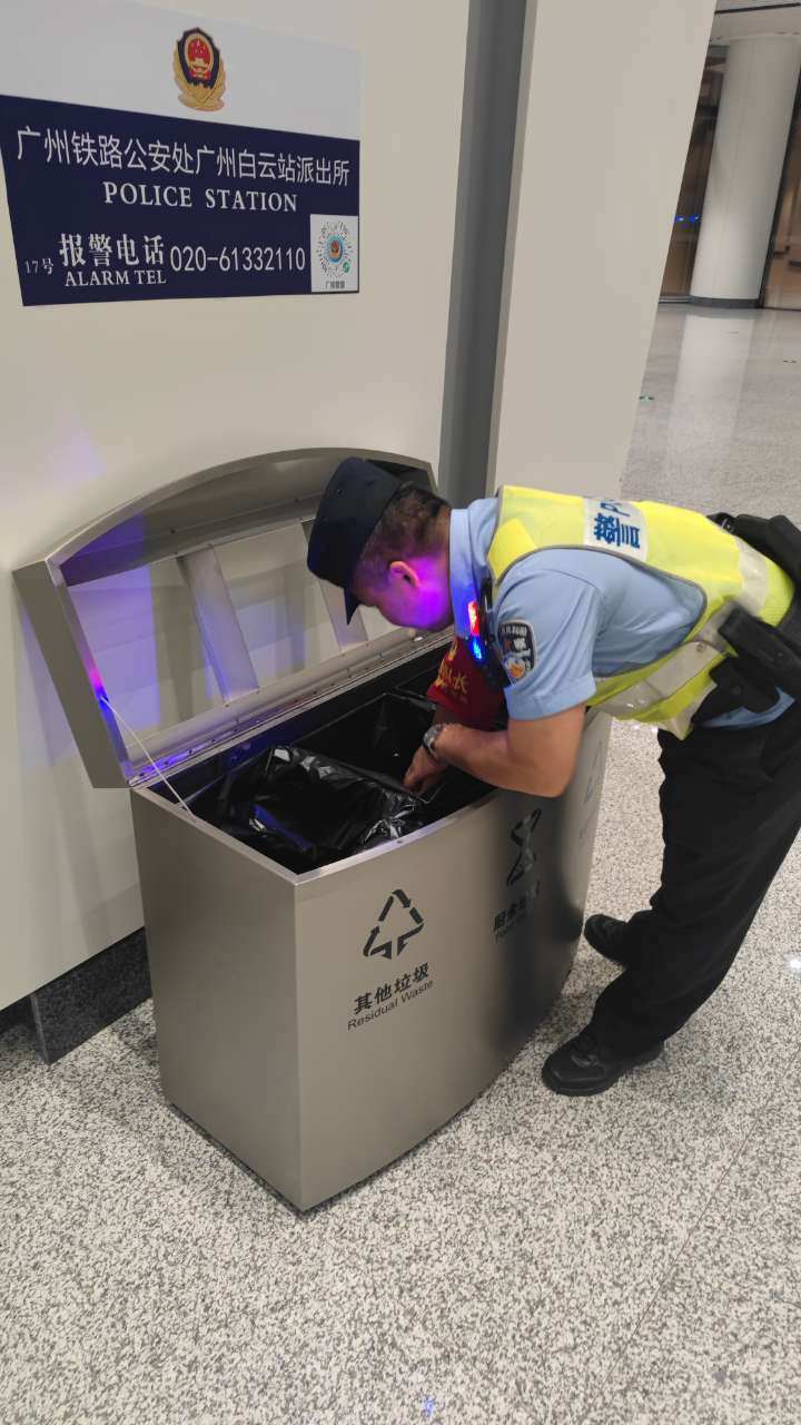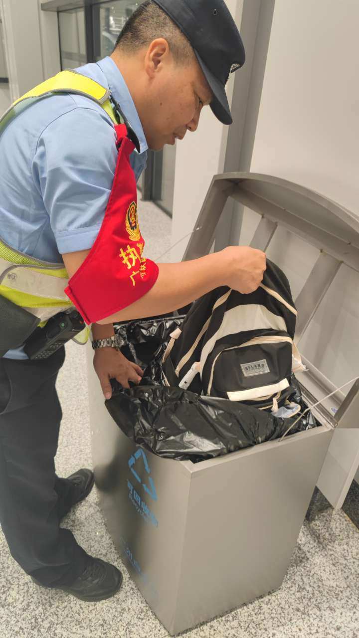 情况紧急,在视频追踪的同时,民警设法联系上了男子所乘坐列车上的乘警。“通过乘警协助,我们得知该男子在捡到背包后,翻找过没有发现贵重物品,便随手将背包扔进了车站的一个垃圾桶内,但具体是哪个垃圾桶他却记不清了。”广州铁路警方介绍道。